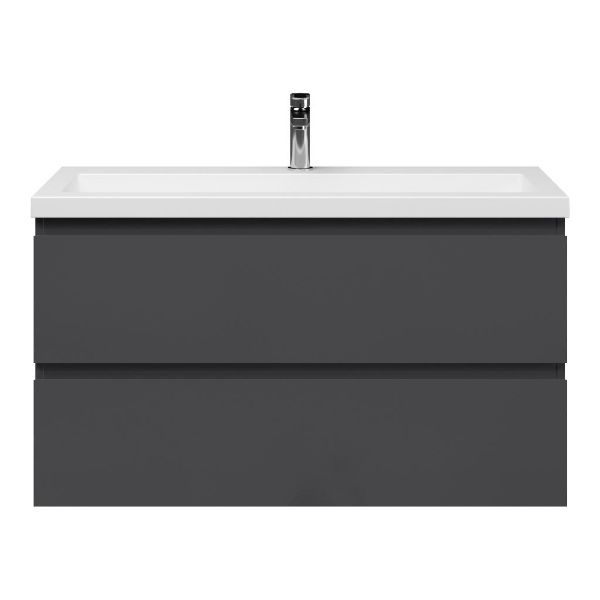 | | Bellanti Secca/Esta-Q ondiep badmeubel 100x36 2 softclose laden antraciet hoogglans greeploos met quartz wastafel mat wit met 1 kraangat zonder overloop |