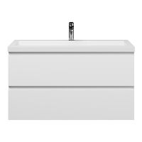 | | Bellanti Secca/Esta-Q ondiep badmeubel 100x36 2 softclose laden wit mat greeploos met quartz wastafel mat wit met 1 kraangat zonder overloop |