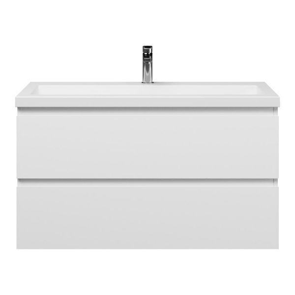 Ondiepe greeploos badkamermeubel in de kleur wit mat. Badmeubel is praktisch voor een compact badkamer. Het meubel van 100 cm breed is er. De wastafel is vervaardig in quartz en heeft de kleur wit mat quartz. Dit badkamermeubel met deze wastafel is leverbaar tussen de 60 cm t/m 120 cm.