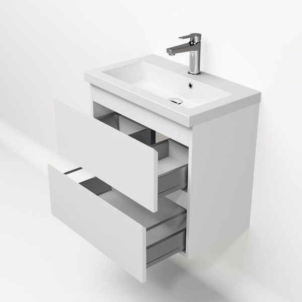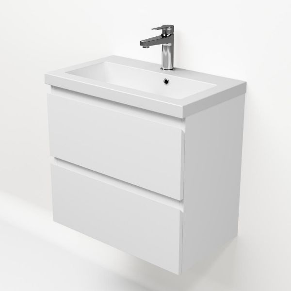 | Bellanti Secca/Esta ondiep badmeubel 60x36 2 softclose laden wit mat greeploos met polystone wastafel mat wit met 1 kraangat met overloop |