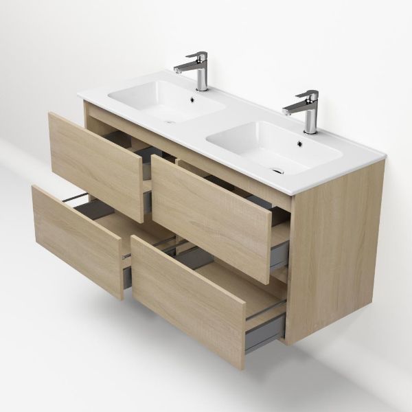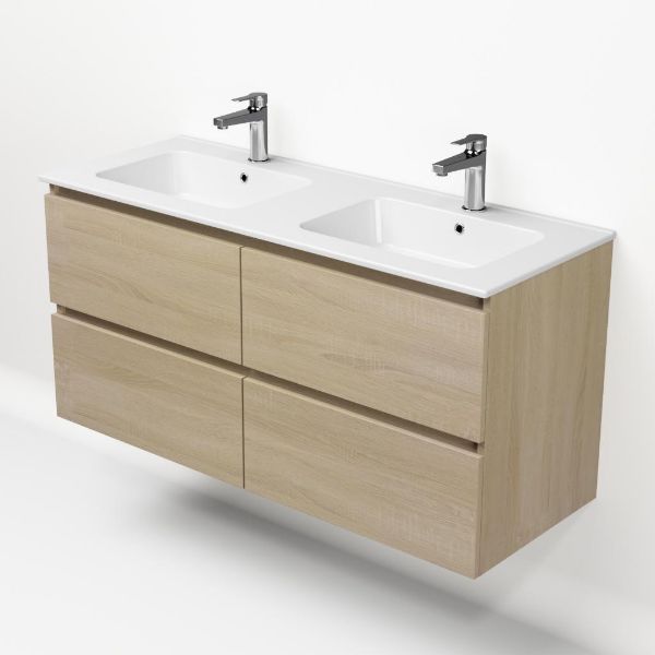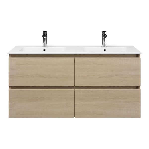 | | Bellanti Elena/Quadra badmeubel 120x46 4 softclose laden eiken licht greeploos keramische wastafel dubbel wit met 2 kraangaten |