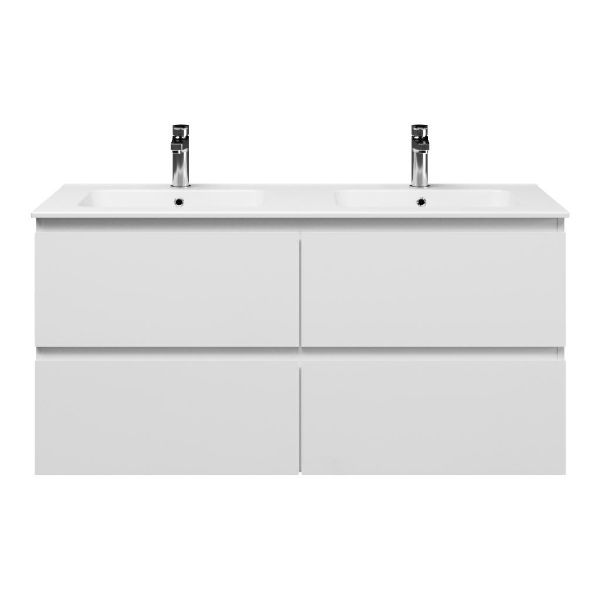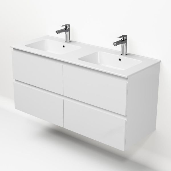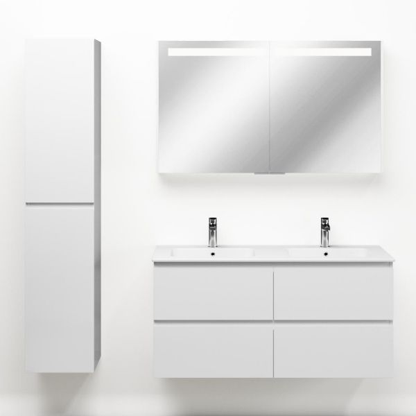 | Bellanti Gisella/Quadra badmeubel 120x46 4 softclose laden wit hoogglans greeploos keramische wastafel dubbel wit met 2 kraangaten |