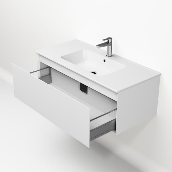 | Bellanti Solo/Quadra badmeubel 100x46 1 softclose lade wit mat greeploos keramische wastafel wit met 1 kraangat |