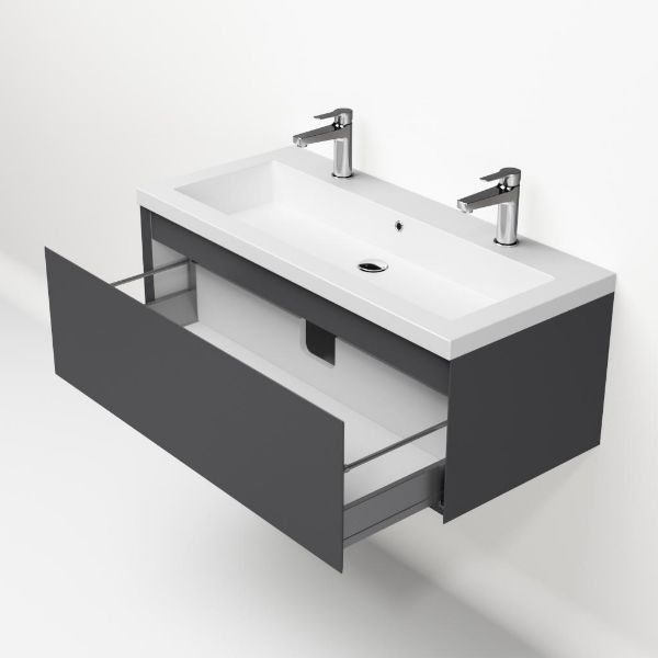 | | Bellanti Solo/Esta-Q badmeubel 100x46 1 softclose lade antraciet mat greeploos wastafel mat wit met 2 kraangaten |