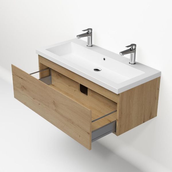 | Bellanti Solo/Esta-Q badmeubel 100x46 1 softclose lade eiken natuur greeploos wastafel mat wit met 2 kraangaten |