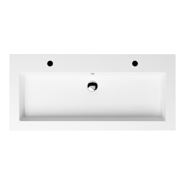 Greeploos badkamermeubel in de kleur eiken natuur is 100 cm breed. De wastafel is vervaardig in quartz en heeft de kleur wit mat quartz. Dit badkamermeubel met deze wastafel is leverbaar tussen de 60 cm t/m 160 cm