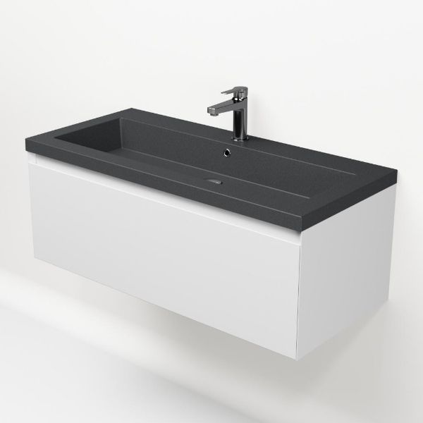 | Bellanti Solo/Esta-Q badmeubel 100x46 1 softclose lade wit mat greeploos quartz wastafel mat grijs met 1 kraangat |