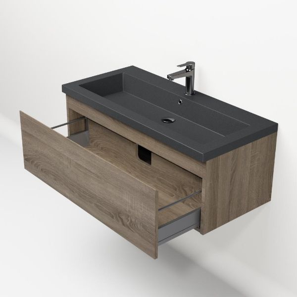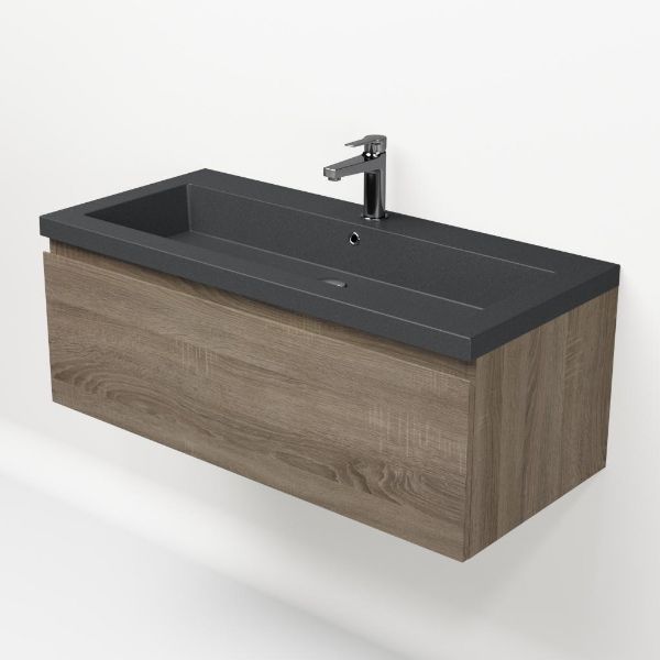 | Bellanti Solo/Esta-Q badmeubel 100x46 1 softclose lade eiken donker greeploos quartz wastafel mat grijs zonder kraangat |