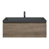 | | Bellanti Solo/Esta-Q badmeubel 100x46 1 softclose lade eiken donker greeploos quartz wastafel mat grijs zonder kraangat |