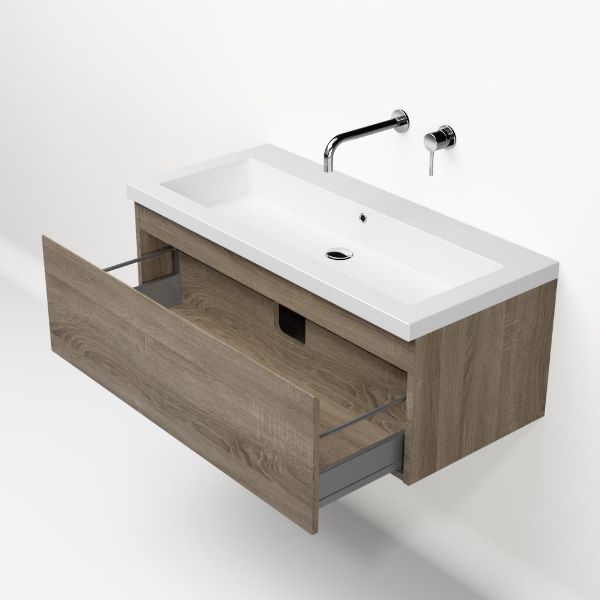 | Bellanti Solo/Esta-Q badmeubel 100x46 1 softclose lade eiken donker greeploos quartz wastafel mat wit zonder kraangat |