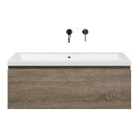| | Bellanti Solo/Esta-Q badmeubel 100x46 1 softclose lade eiken donker greeploos quartz wastafel mat wit zonder kraangat |