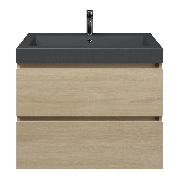 | | Bellanti Elena/Esta-Q badmeubel 80x46 2 softclose laden eiken licht greeploos quartz wastafel mat grijs met 1 kraangat |