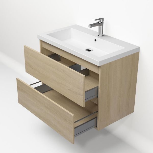 | | Bellanti Elena/Esta-Q badmeubel 80x46 2 softclose laden eiken licht greeploos quartz wastafel mat wit met 1 kraangat |