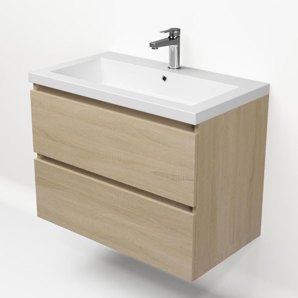 | Bellanti Elena/Esta-Q badmeubel 80x46 2 softclose laden eiken licht greeploos quartz wastafel mat wit met 1 kraangat |