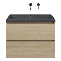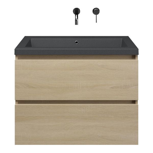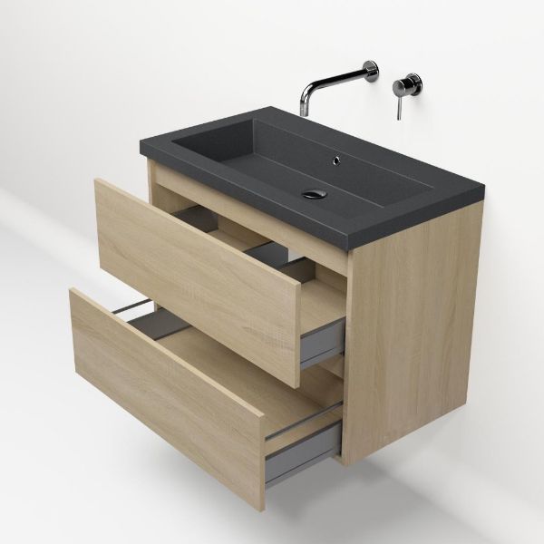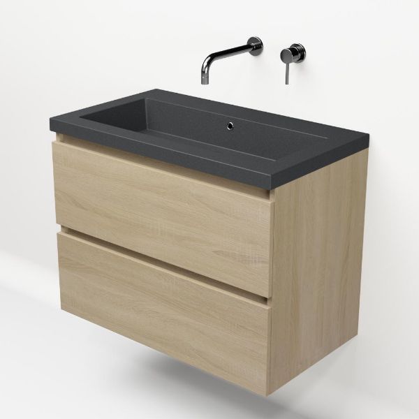 Bellanti Elena/Esta-Q badmeubel 80x46 2 softclose laden eiken licht greeploos quartz wastafel mat grijs zonder kraangaten