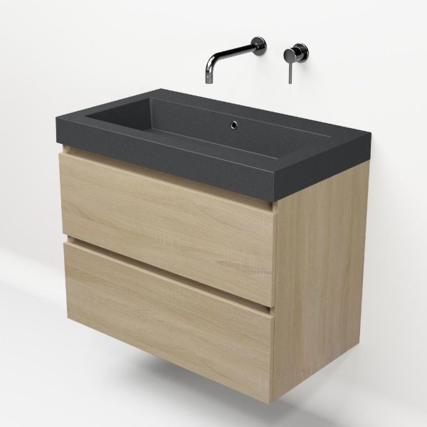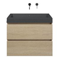 | | Bellanti Elena/Esta-Q badmeubel 80x46 2 softclose laden eiken licht greeploos quartz wastafel mat grijs zonder kraangaten |