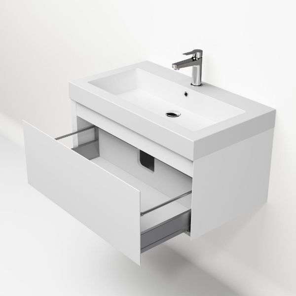 | Bellanti Solo/Esta-Q badmeubel 80x46 1 softclose lade wit mat greeploos wastafel mat wit met 1 kraangat |