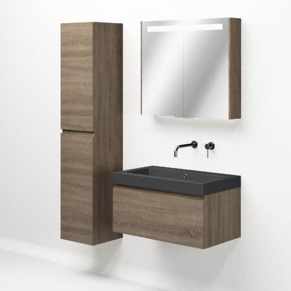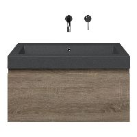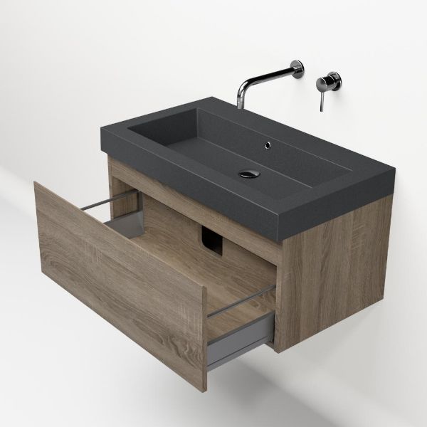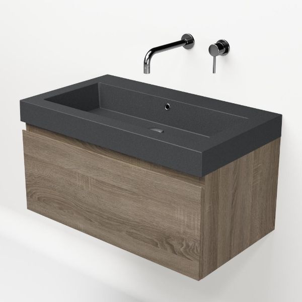 Bellanti Solo/Esta-Q badmeubel 80x46 1 softclose lade eiken donker greeploos quartz wastafel mat grijs zonder kraangaten