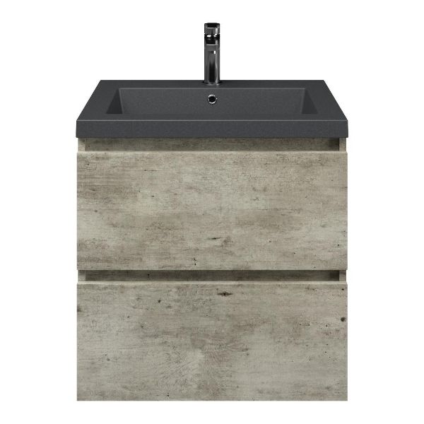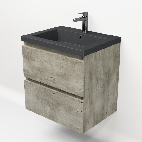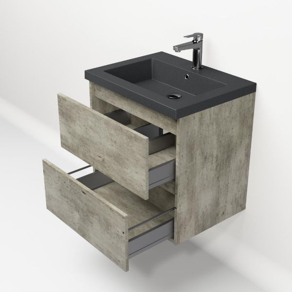 | | Bellanti Elena/Esta-Q badmeubel 60x46 2 softclose laden steigerhout licht grijs greeploos quartz wastafel mat grijs met 1 kraangat |