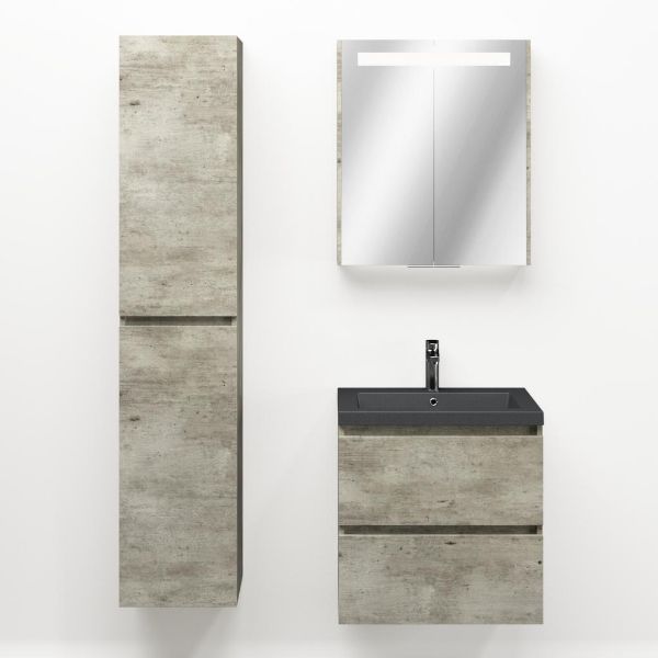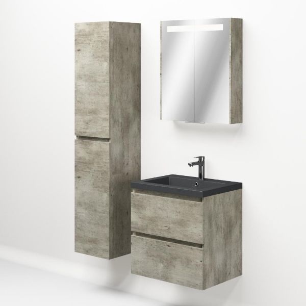 Greeploos badkamermeubel in de kleur steigerhout licht grijs is 60 cm breed. De wastafel is vervaardig in quartz en heeft de kleur grijs mat quartz. Dit badkamermeubel met deze wastafel is leverbaar tussen de 60 cm t/m 200 cm