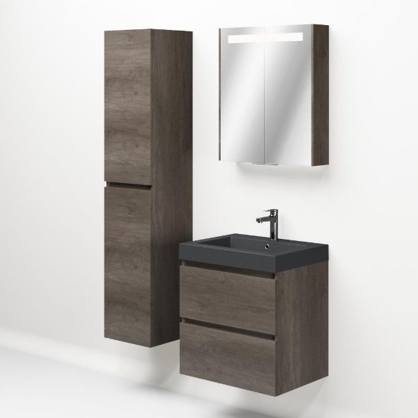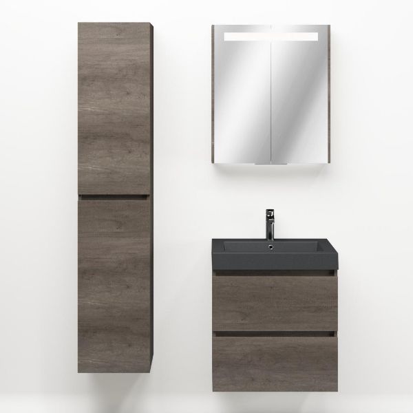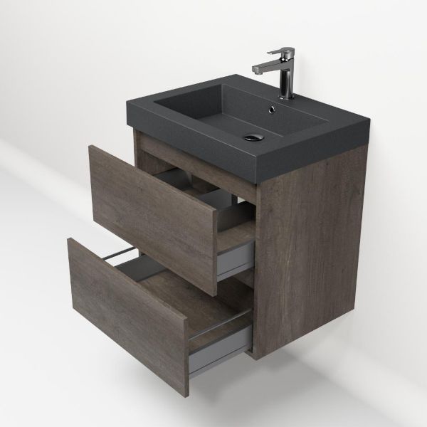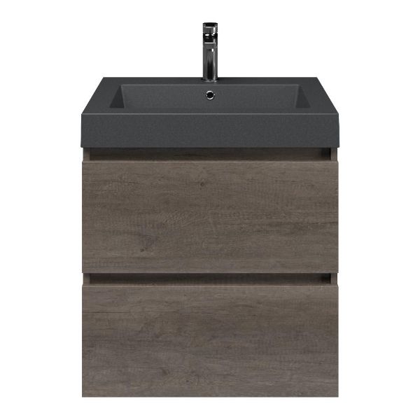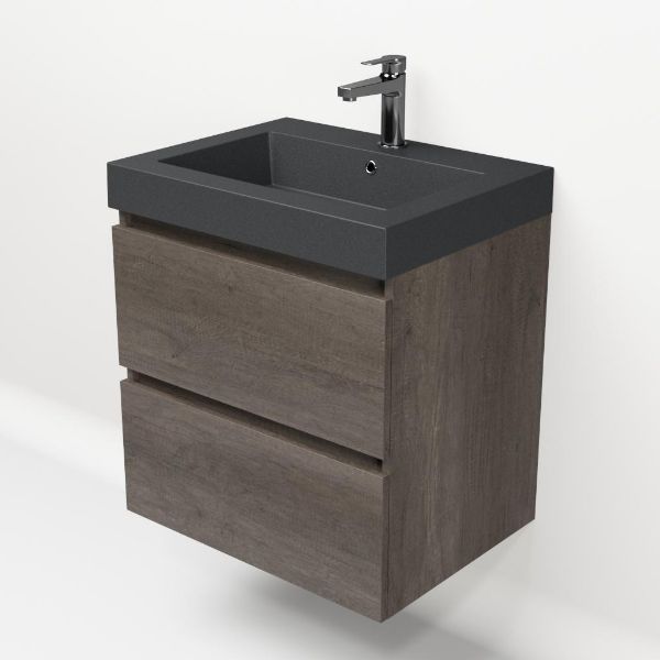 | | Bellanti Elena/Esta-Q badmeubel 60x46 2 softclose laden olm donker grijs greeploos quartz wastafel mat grijs met 1 kraangat |