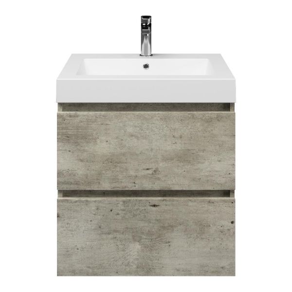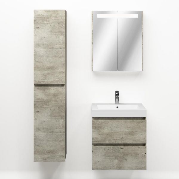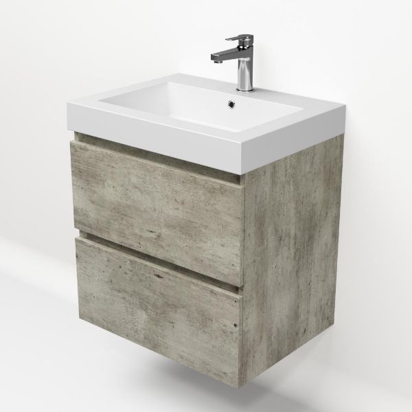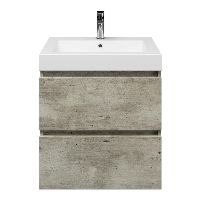 | | Bellanti Elena/Esta-Q badmeubel 60x46 2 softclose laden steigerhout licht grijs greeploos quartz wastafel mat wit met 1 kraangat |
