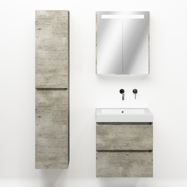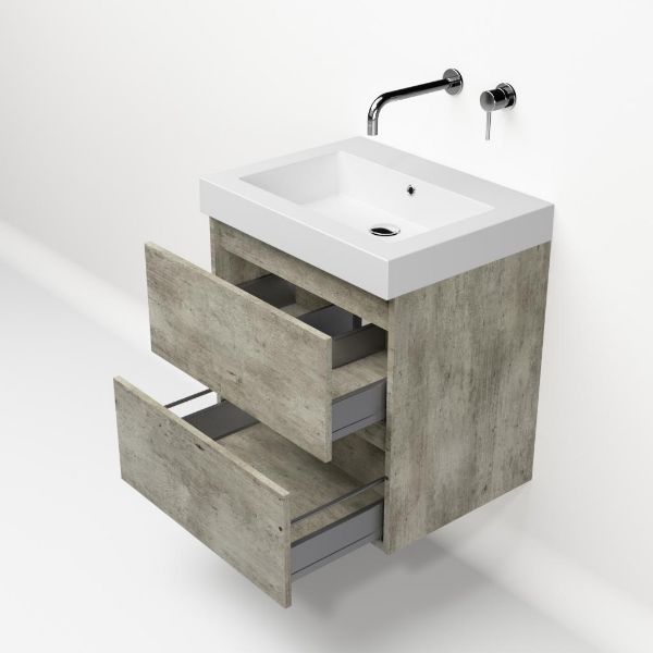 | Bellanti Elena/Esta-Q badmeubel 60x46 2 softclose laden steigerhout licht grijs greeploos quartz wastafel mat wit zonder kraangaten |