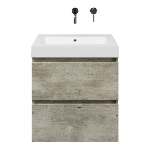 | | Bellanti Elena/Esta-Q badmeubel 60x46 2 softclose laden steigerhout licht grijs greeploos quartz wastafel mat wit zonder kraangaten |