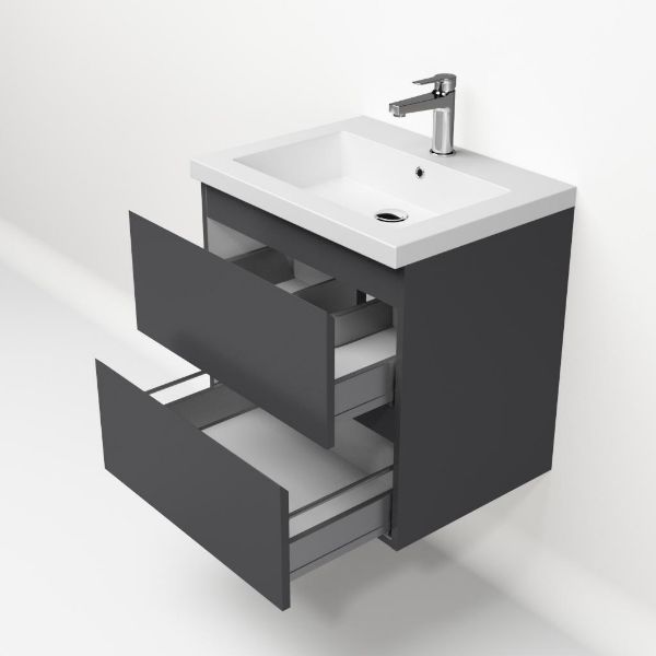 | | Bellanti Gisella/Esta-Q badmeubel 60x46 2 softclose laden antraciet mat greeploos quartz wastafel mat wit met 1 kraangat |