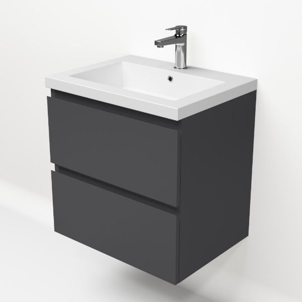 | Bellanti Gisella/Esta-Q badmeubel 60x46 2 softclose laden antraciet mat greeploos quartz wastafel mat wit met 1 kraangat |
