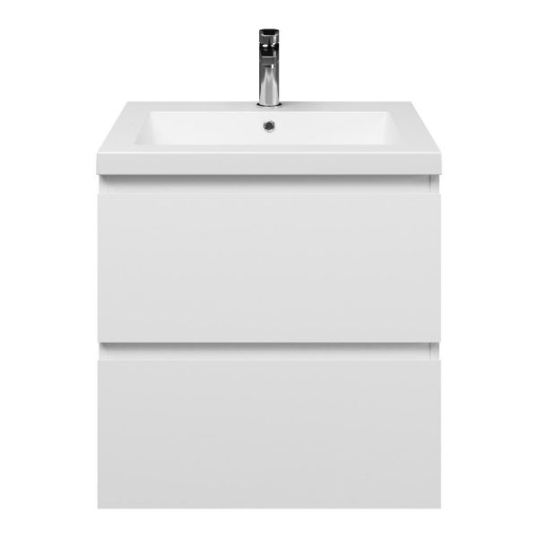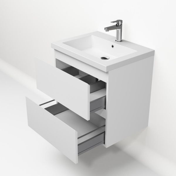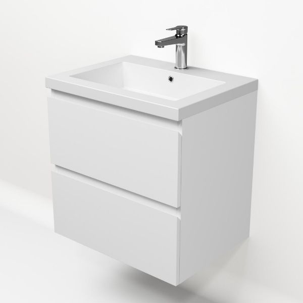 | | Bellanti Gisella/Esta-Q badmeubel 60x46 2 softclose laden wit mat greeploos quartz wastafel mat wit met 1 kraangat |