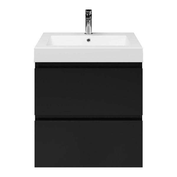 | Bellanti Gisella/Esta-Q badmeubel 60x46 2 softclose laden zwart mat greeploos quartz wastafel mat wit met 1 kraangat |