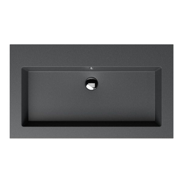 | | Bellanti Solo/Tela/Esta-Q badmeubel 80x46 1 softclose lade olm greeploos quartz wastafel mat grijs zonder kraangaten met mat zwart metalen frame |