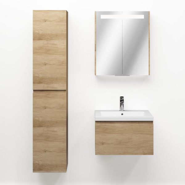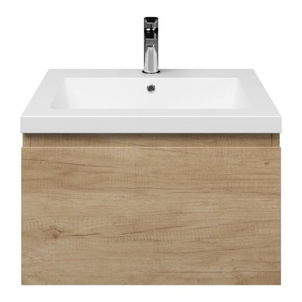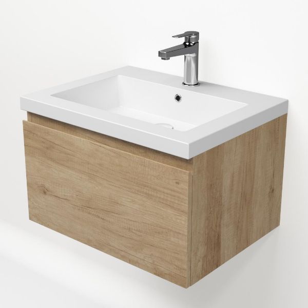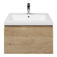 Greeploos badkamermeubel in de kleur olm is 60 cm breed. De wastafel is vervaardig in quartz en heeft de kleur wit mat quartz. Dit badkamermeubel met deze wastafel is leverbaar tussen de 60 cm t/m 160 cm