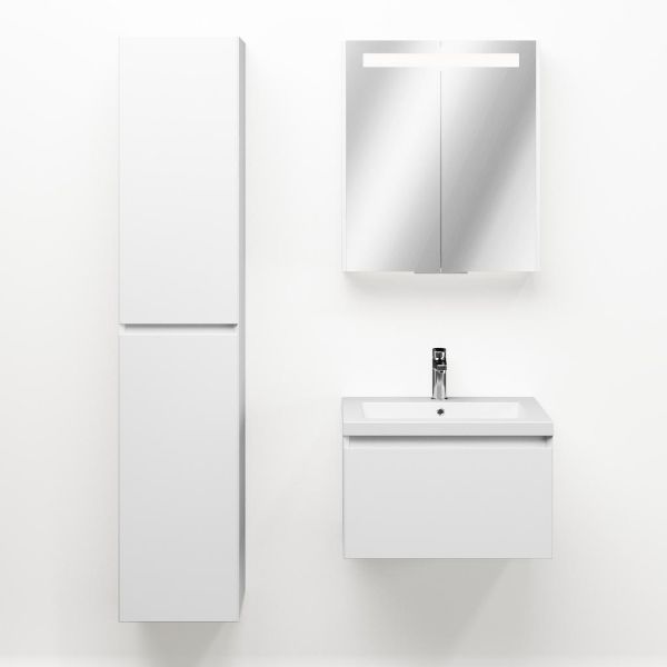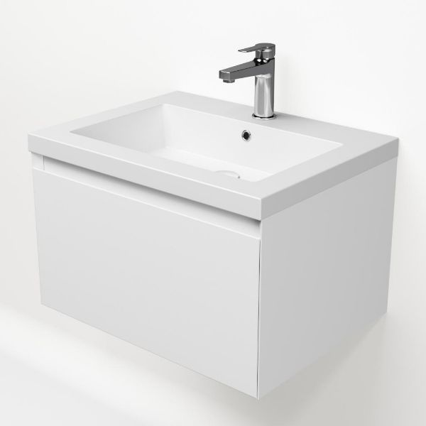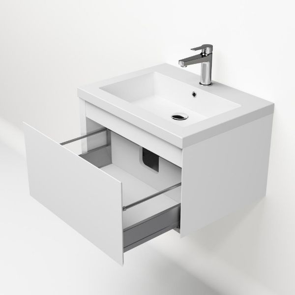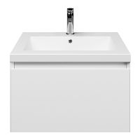 Greeploos badkamermeubel in de kleur wit mat is 60 cm breed. De wastafel is vervaardig in quartz en heeft de kleur wit mat quartz. Dit badkamermeubel met deze wastafel is leverbaar tussen de 60 cm t/m 160 cm