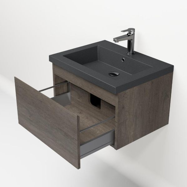 Bellanti Solo/Esta-Q badmeubel 60x46 1 softclose lade olm donker grijs greeploos quartz wastafel mat grijs met 1 kraangat