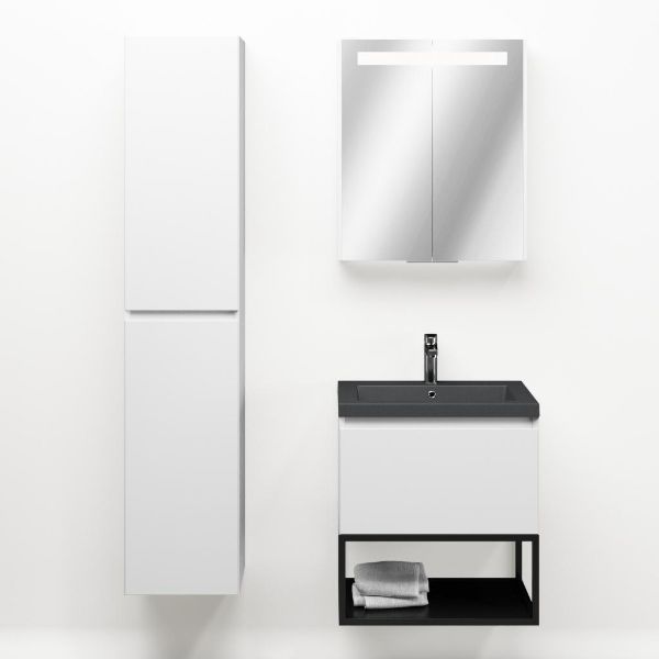Greeploos badkamermeubel in de kleur wit mat is 60 cm breed.  De wastafel is vervaardig in quartz en heeft de kleur grijs mat quartz. Dit badkamermeubel met deze wastafel is leverbaar tussen de 60 cm t/m 160 cm