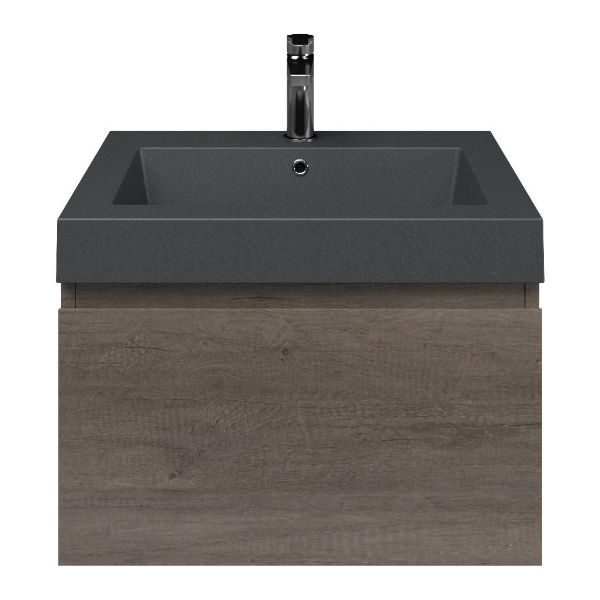 | Bellanti Solo/Esta-Q badmeubel 60x46 1 softclose lade olm donker grijs greeploos quartz wastafel mat grijs met 1 kraangat |