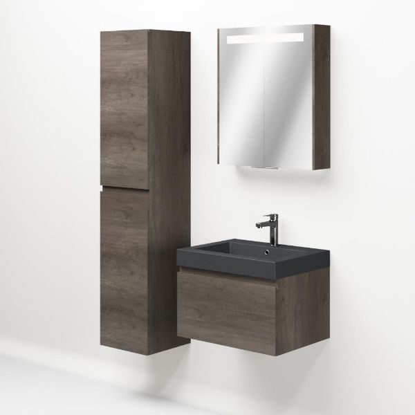 Greeploos badkamermeubel in de kleur olm donker grijs is 60 cm breed. De wastafel is vervaardig in quartz en heeft de kleur grijs mat quartz. Dit badkamermeubel met deze wastafel is leverbaar tussen de 60 cm t/m 160 cm