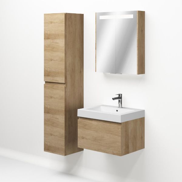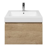 Greeploos badkamermeubel in de kleur olm is 60 cm breed. De wastafel is vervaardig in quartz en heeft de kleur wit mat quartz. Dit badkamermeubel met deze wastafel is leverbaar tussen de 60 cm t/m 160 cm
