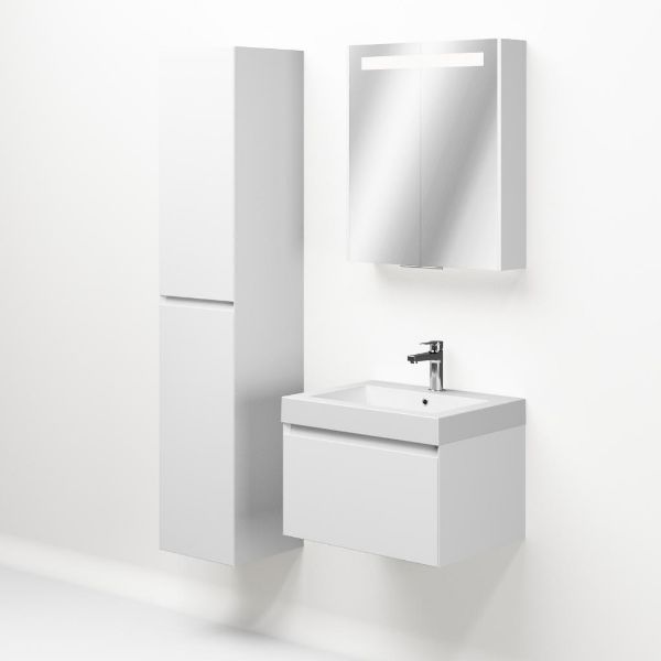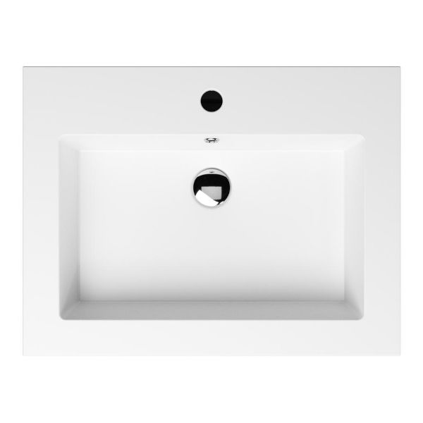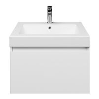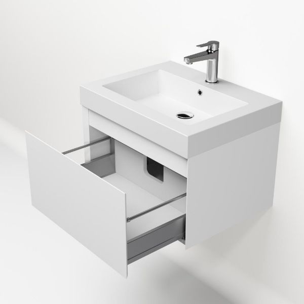 Greeploos badkamermeubel in de kleur wit mat is 60 cm breed. De wastafel is vervaardig in quartz en heeft de kleur wit mat quartz. Dit badkamermeubel met deze wastafel is leverbaar tussen de 60 cm t/m 160 cm