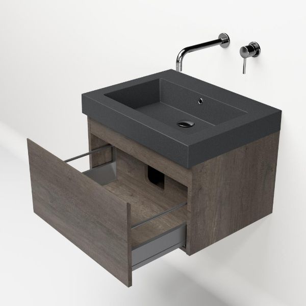 Bellanti Solo/Esta-Q badmeubel 60x46 1 softclose lade olm donker grijs greeploos quartz wastafel mat grijs zonder kraangaten