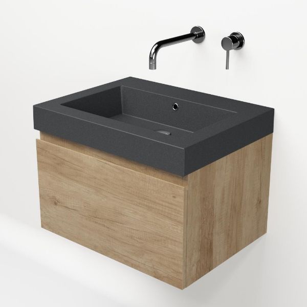 | | Bellanti Solo/Esta-Q badmeubel 60x46 1 softclose lade olm greeploos quartz wastafel mat grijs zonder kraangaten |