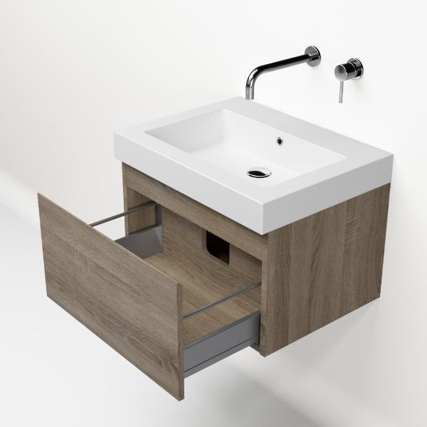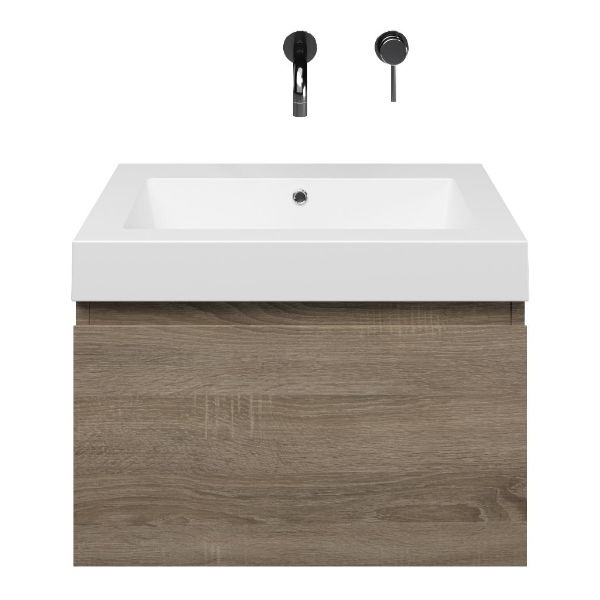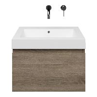 | | Bellanti Solo/Esta-Q badmeubel 60x46 1 softclose lade eiken donker greeploos quartz wastafel mat wit zonder kraangaten |