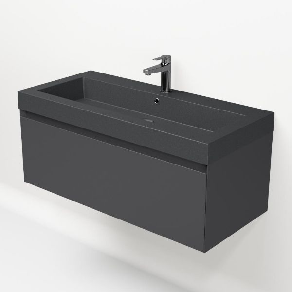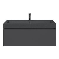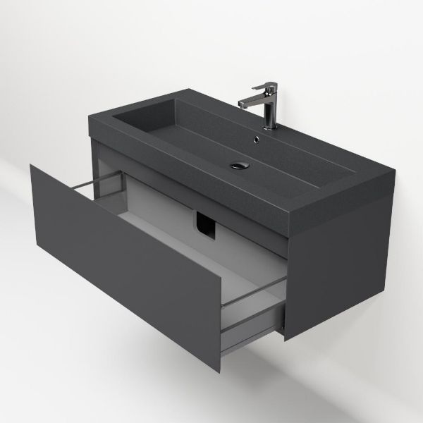 | | Bellanti Solo/Esta-Q badmeubel 100x46 1 softclose lade antraciet mat greeploos quartz wastafel mat grijs met 1 kraangat |