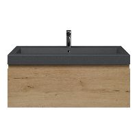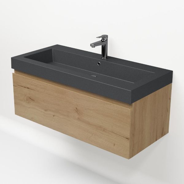 | | Bellanti Solo/Esta-Q badmeubel 100x46 1 softclose lade eiken natuur greeploos quartz wastafel mat grijs met 1 kraangat |