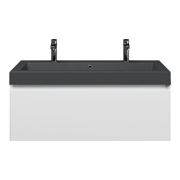 | | Bellanti Solo/Esta-Q badmeubel 100x46 1 softclose lade wit mat greeploos quartz wastafel mat grijs met 2 kraangaten |