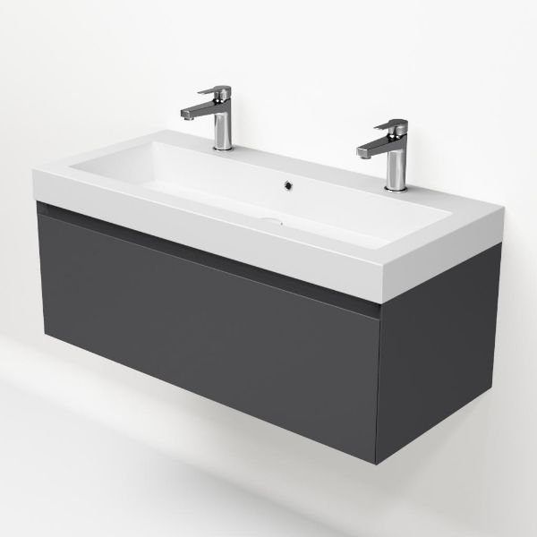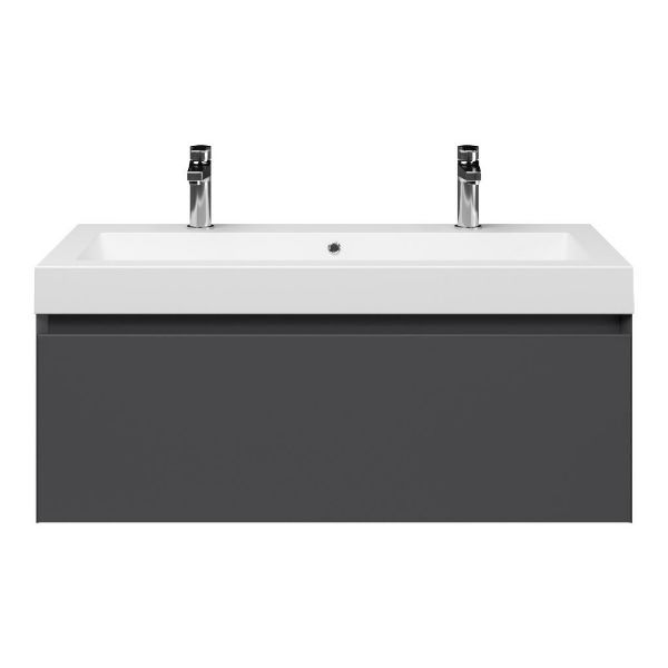 | Bellanti Solo/Esta-Q badmeubel 100x46 1 softclose lade antraciet mat greeploos quartz wastafel mat wit met 2 kraangaten |