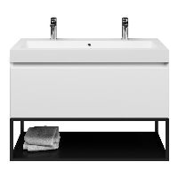 | | Bellanti Solo/Tela/Esta-Q badmeubel 100x46 1 softclose lade wit mat greeploos quartz wastafel mat wit met 2 kraangaten met mat zwart metalen frame |