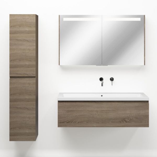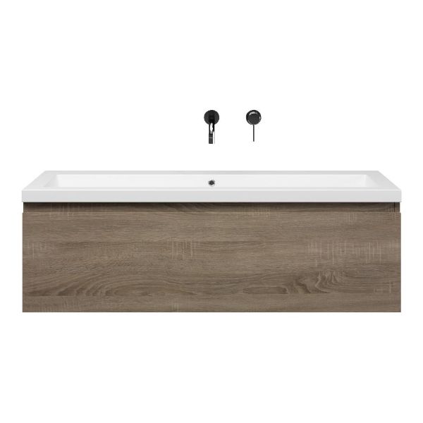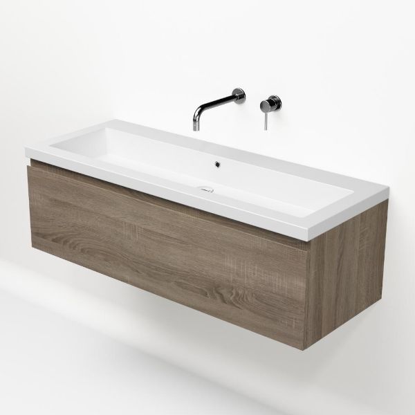 Bellanti Solo/Esta-Q badmeubel 120x46 1 softclose lade eiken donker greeploos quartz wastafel mat wit zonder kraangaten